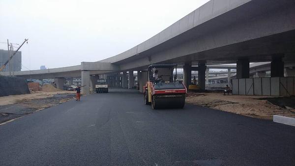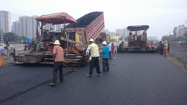 6月23日,二環(huán)南四標(biāo)進(jìn)行立交橋下快車道瀝青攤鋪。快車道底面層用粗粒式Ac-25面積為12000平方,中面層用中粒式Ac-16面積為14300平方。攤鋪前攤鋪項(xiàng)目部提前計(jì)劃,合理安排,共組織4臺攤鋪機(jī),2臺壓路機(jī);攤鋪過程中現(xiàn)場施工人員緊密配合,加強(qiáng)對每一環(huán)節(jié)檢測控制與管理,保證了攤鋪質(zhì)量。預(yù)計(jì)到26日完成此次攤鋪任務(wù)。