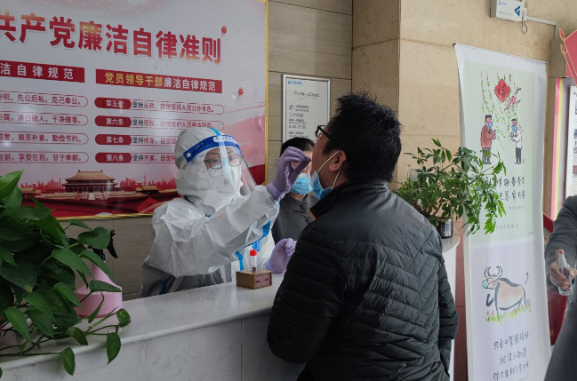 自11月30日起,隨著解除封控回到基地上班的職工陸續(xù)增加,有職工提到自己居住地核酸檢測(cè)時(shí)間結(jié)束的早,很怕耽誤了檢測(cè),無法按時(shí)上班。分公司后勤保障組組長(zhǎng)馬婕立刻多方打聽,詳細(xì)詢問,反復(fù)溝通,終于得到華山街道辦事處的回復(fù),可以上門對(duì)核酸檢測(cè)進(jìn)行培訓(xùn)和指導(dǎo)。很快,由小組成員李小嬌、張文鳳和物業(yè)公司工作人員組成的臨時(shí)核酸檢測(cè)點(diǎn)籌備完成。